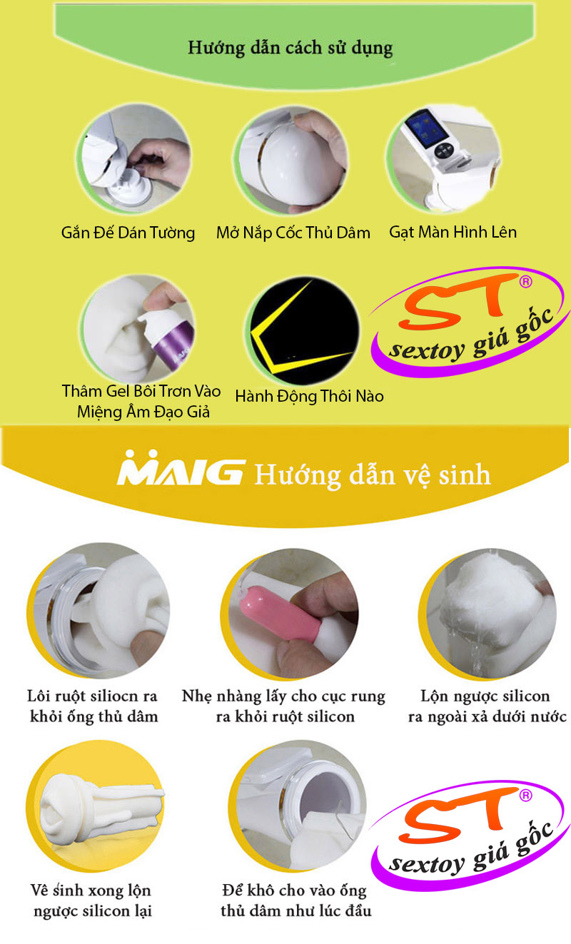 – Sau khi thỏa mãn cho dương vật ra khỏi máy thủ dâm,vệ sinh theo các bước như trong hình minh hoạ bên trên