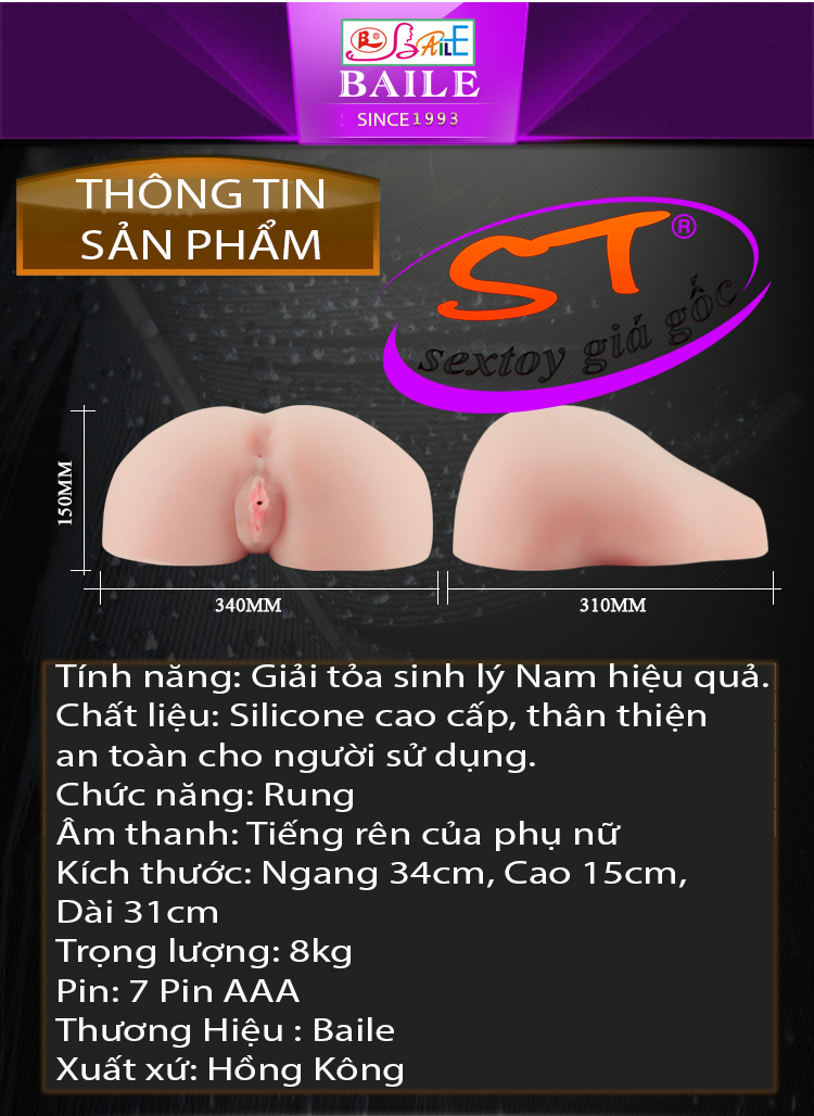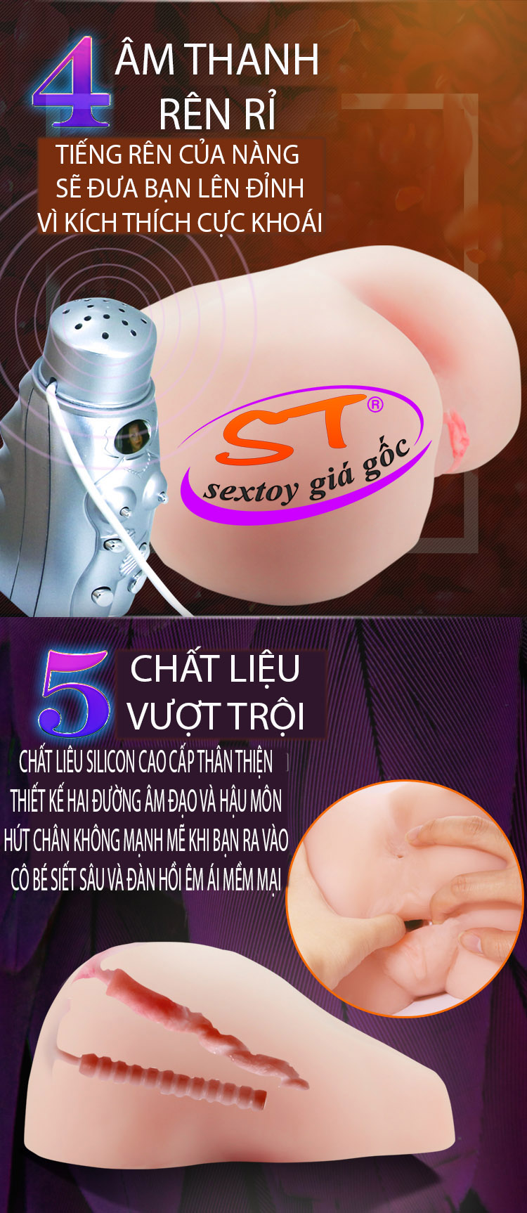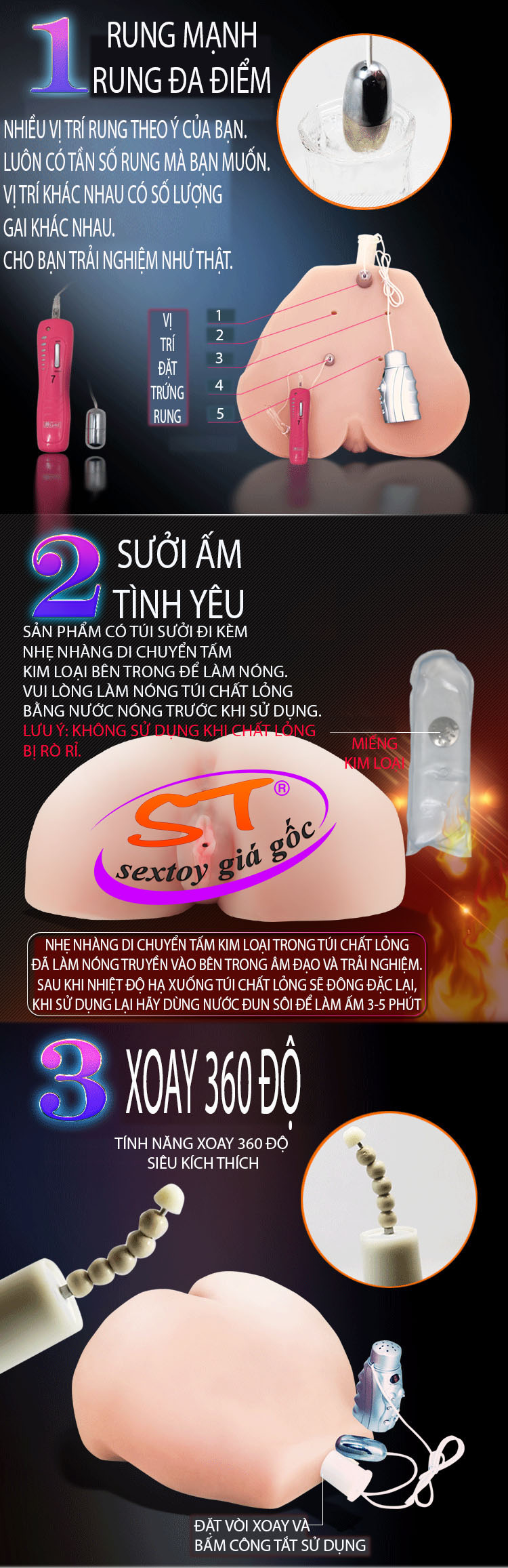 Vòng 3 siêu cao cấp là sản phẩm đồ chơi người lớn được mô phỏng chân thực đến từng chi tiết vòng 3 của một người phụ nữ sexy gợi cảm. Phần âm đạo giả và hậu môn giả được thiết kể nhỏ hẹp, se khít, mang đến cho bạn cảm giác như đang được “mây mưa” cùng một cô gái trinh trắng và thanh khiết. Bạn có thể tha hồ thay đổi tư thế quan hệ qua đường âm đạo hay hậu môn mà không hề sợ bị nhàm chán. Đặc biệt, với những anh chàng thích kiểu quan hệ mới lạ theo đường hậu môn thì sản phẩm này sẽ là sự lựa chọn tuyệt vời mà không phải bất cứ người tình nào cũng đáp ứng được.